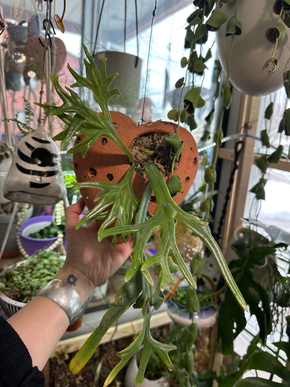 Our Fern & Platycerium collection brings soft texture and sculptural drama to your space. From lush Boston and delicate maidenhair to iconic staghorn “shields,” these terrestrial and epiphytic ferns thrive in bright, indirect light with steady humidity. Style them in airy pots, hanging baskets, kokedama, or mount staghorns on boards and frames for a living‑wall look. Layered fronds add movement and a calming, forest vibe—perfect for bathrooms, kitchens, and cozy corners.